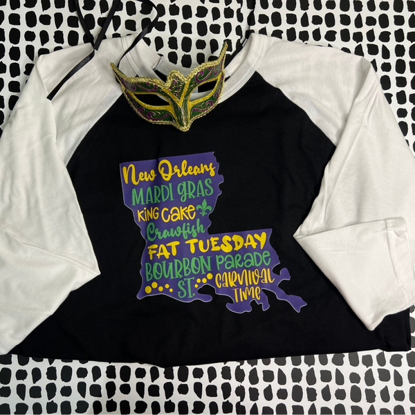 Celebrate the vibrant spirit of Louisiana with this Mardi Gras-themed T-shirt! Featuring the iconic outline of the state, the design is filled with the festive colors and tradition that make Mardi Gras so special. Whether you're gearing up for the parade or simply want to show off your Louisiana pride everyday, this shirt captures the essence of the Louisiana celebration. It's perfect for all-day wear. Let the rich culture, lively energy, and colorful traditions of Louisiana shine through with every wear!